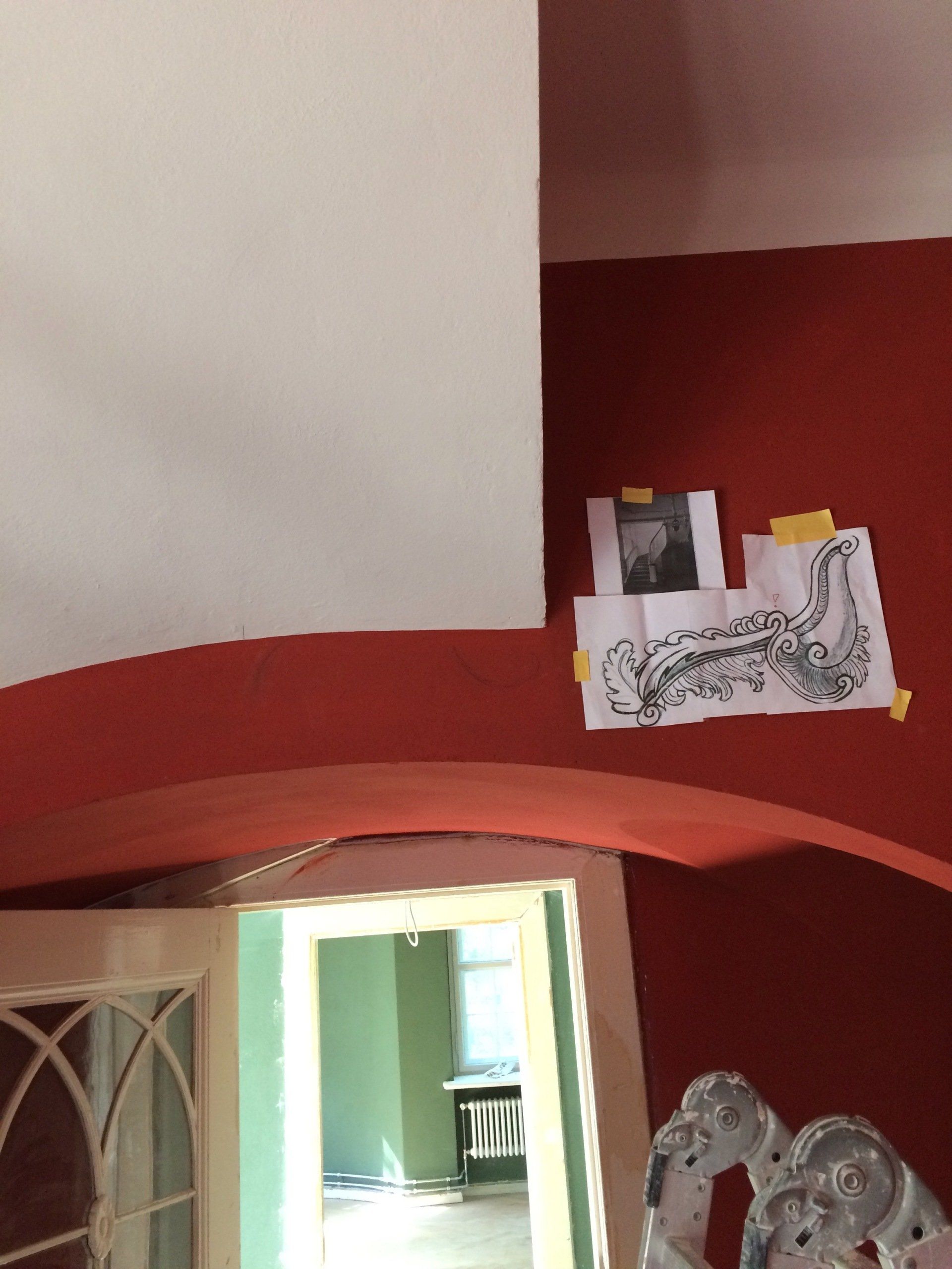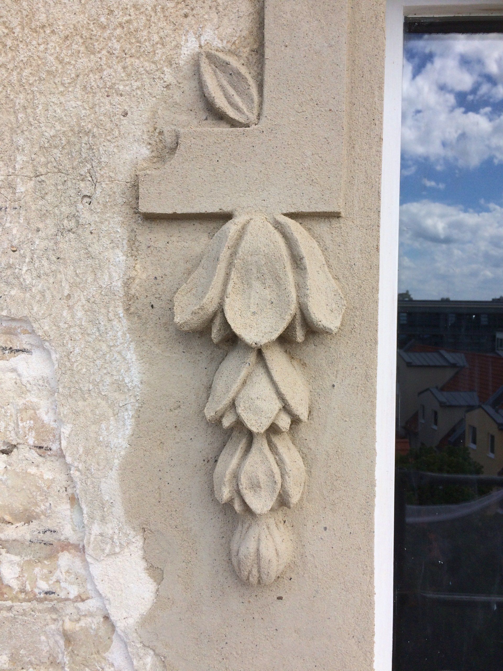 Antragsstuck nennt man die Ausarbeitung plastischer Stuckelemente an Ort und Stelle in die noch weiche oder halbfeste Mörtelmasse . Dies erfordert großes handwerkliches Geschick.